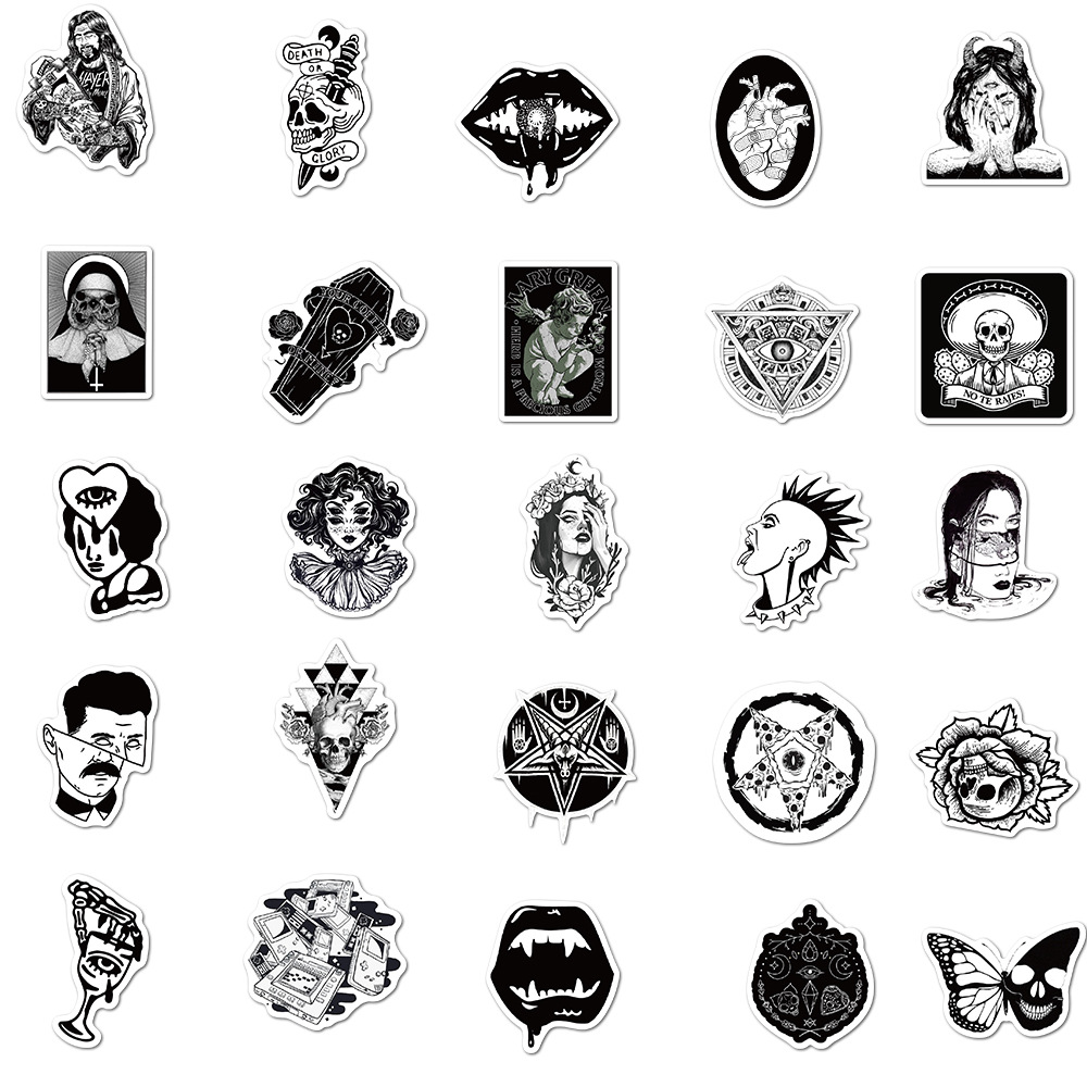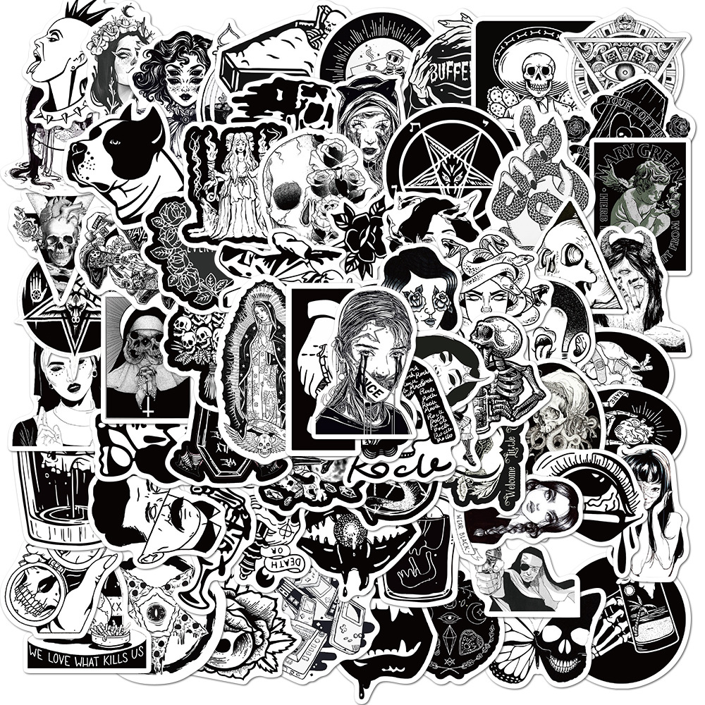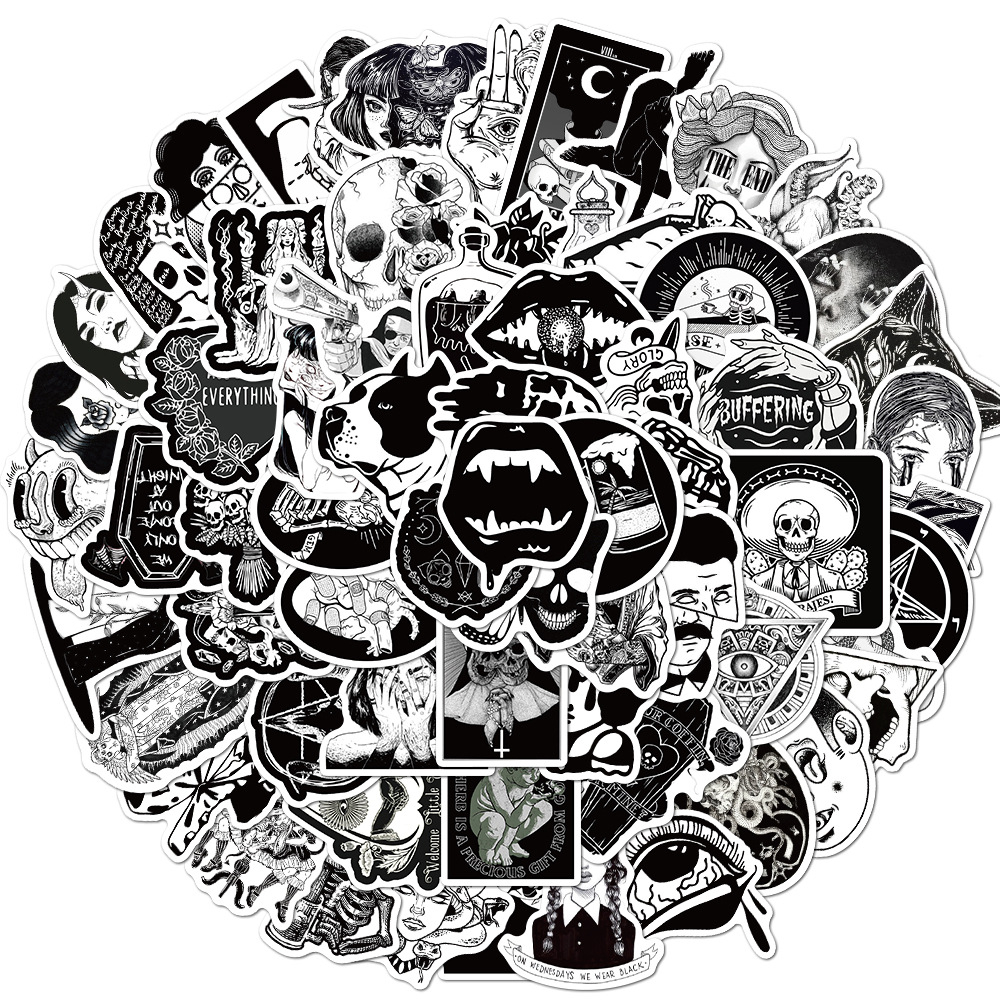 100pcs/Pack Black White Gothic Style Horror Thriller Stickers, DIY Laptop Skateboard Guitar Car Decals