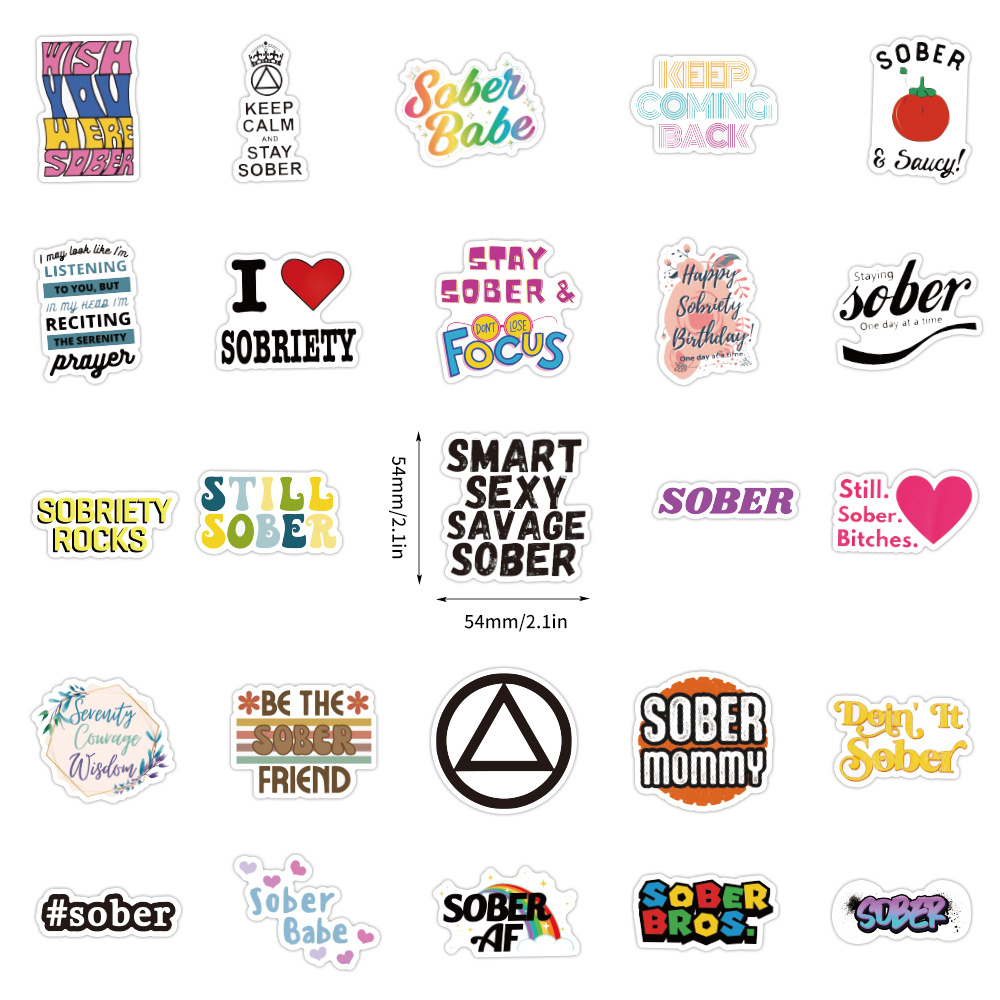 60pcs, Sober Stickers, Sobriety Vinyl Stickers, Water Bottle Laptop Scrapbooking Stickers Recovery Gifts