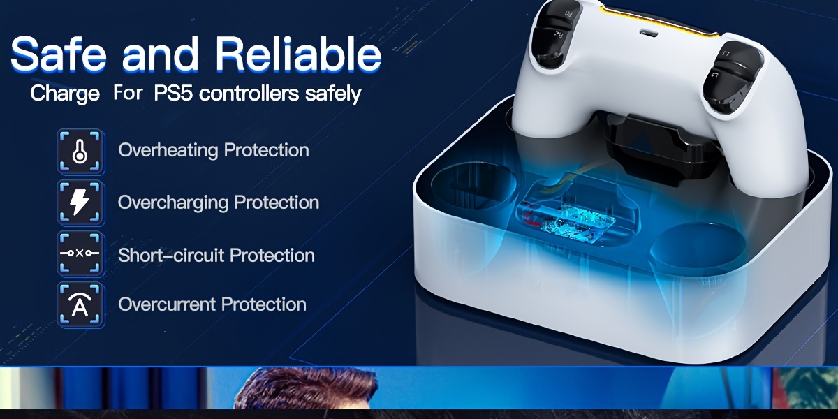 The charging station is equipped with a smart chip that safeguards against overcharging, excessive current, overheating, high voltage, and short circuits, ensuring your controller's battery remains unharmed. This accessory is essential for your controller. The four-slot design allows for effortless charging of your controller; you can charge it without any specific order! The dualsense controller charging dock helps keep your controller neatly arranged.