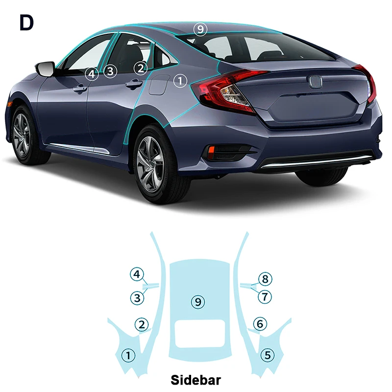For CIVIC SEDAN TPU Self Healing Anti-scratch Protective Film for Car Body Full Coverage Pre-cut 6 Year Warranty