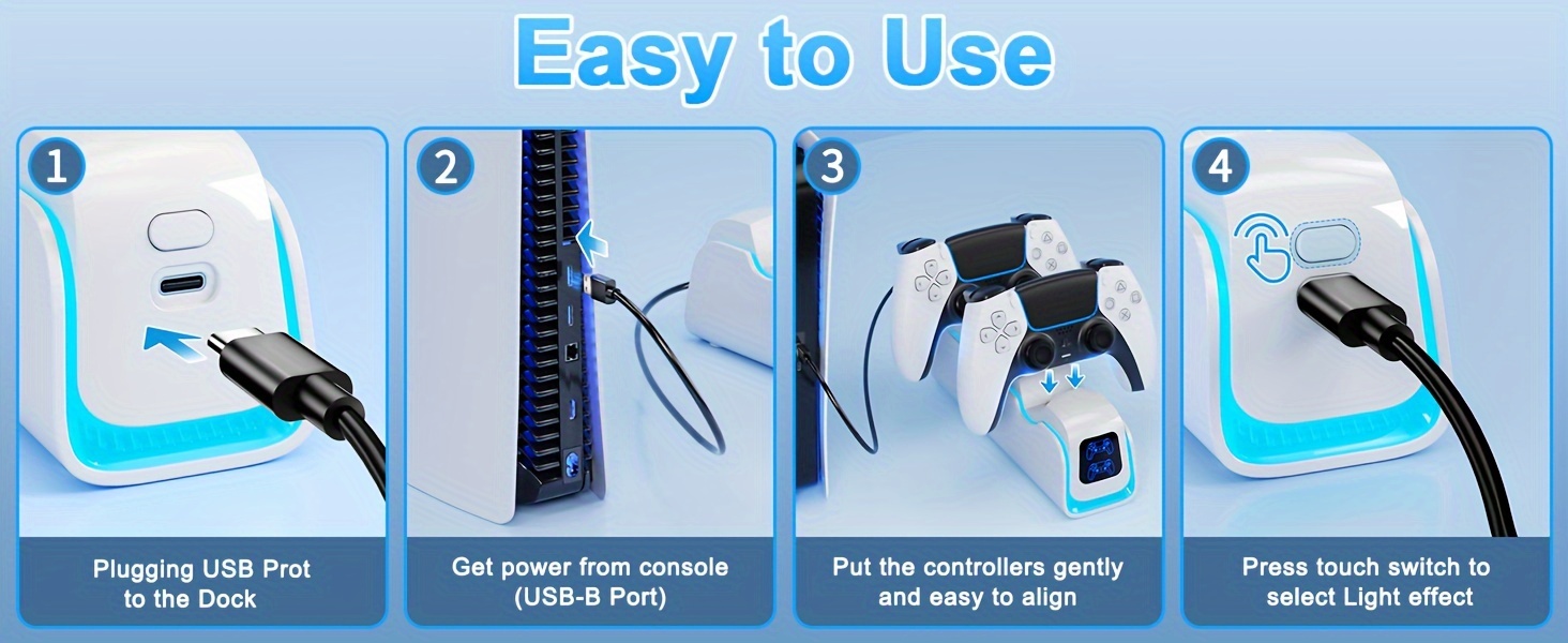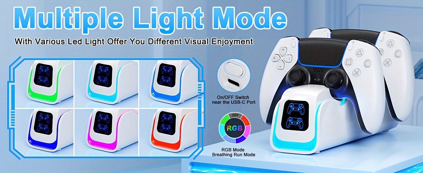 PS5 Controller Charger, 2024 Upgrade Charging Dock For PlayStation 5 Dualsense & Edge Controller, With 6 RGB LED Light Mode, PS5 Fast Charging Station With Cable