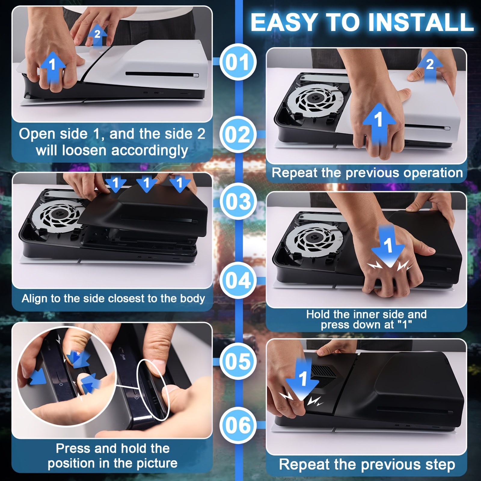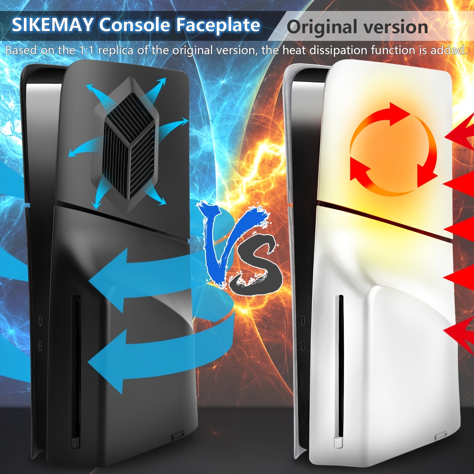 PS5 Slim Hard Shell Cover - Shockproof Face & Side Plates for Disc Edition, Premium ABS Replacement Panels, Black - Compatible with PlayStation 5 Console